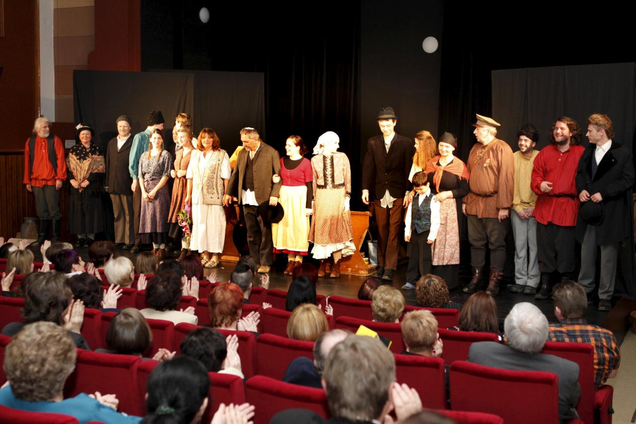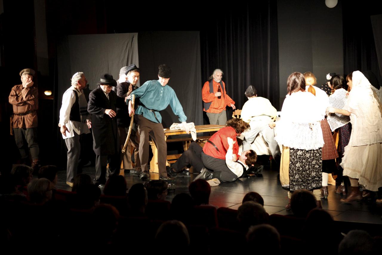 Sobota 11. 4. – Slavnostní zahájení Ladislav Valeš: Všechno není košér – Rádobydivadlo Klapý Komedie / 120 min Patron: Fatra a. s. Hra na motivy světoznámého amerického muzikálu Šumař na střeše, kdy si dívky vyberou nápadníky, avšak pro tatínka nejsou zrovna košer. Inscenace „Všechno není košer“ vznikla na motivy knihy spisovatele Šoloma Alejchema „Tovje vdává dcery“, která byla zdramatizována do světoznámého amerického muzikálu Šumař na střeše. Příběh o židovské rodině chudého mlékaře, který má pět dcer. Jak postupně dospívají, chtějí se vdávat podle svého, navzdory tradicím a svým rodičům, kteří jim vybrali ty správné ženichy. Nakonec zvítězí jistá moudrost, spravedlnost o otcovský ohled k dcerám. V příběhu se navíc prolíná politická situace na tehdejší Ukrajině, kdy nacisté násilně Židy vysidlovali. Hlasování diváků: 4,7478 Foto: František Cívela