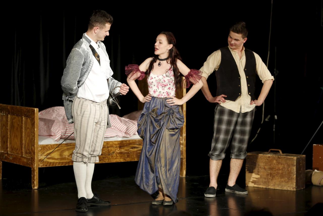 Středa 15. 4. – Milan Kundera: Jakub a jeho pán – DS Masarykova gymnázia Vsetín Komedie / 120 min Patron: Telkas s. r. o. Vtipná, hravá, moudrá komedie, jízlivá variace na Diderotův román Jakub Fatalista. Setkání dvou epoch, dvou žánrů, dvou autorů, nezapomenutelného sluhy Jakuba a jeho pána. Příběh o věčném přátelství, lásce, zradě a také o cestě. Putování za tím, kdo jsme a co určuje naše kroky. Kundera touto hrou vzdává hold jedné z největších rozkoší, jakou zná – rozkoši z vyprávění: radostně se kochá věčně se opakující lidskou pošetilostí i skepticky přemítá nad tím, „co je psáno tam nahoře“ a zdali jsme jako divadelní postavy napsáni dobře či nikoli. Foto: František Cívela