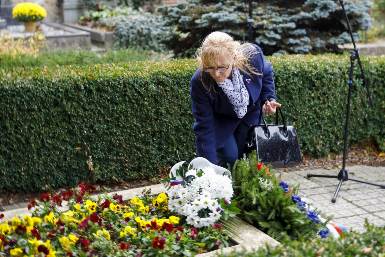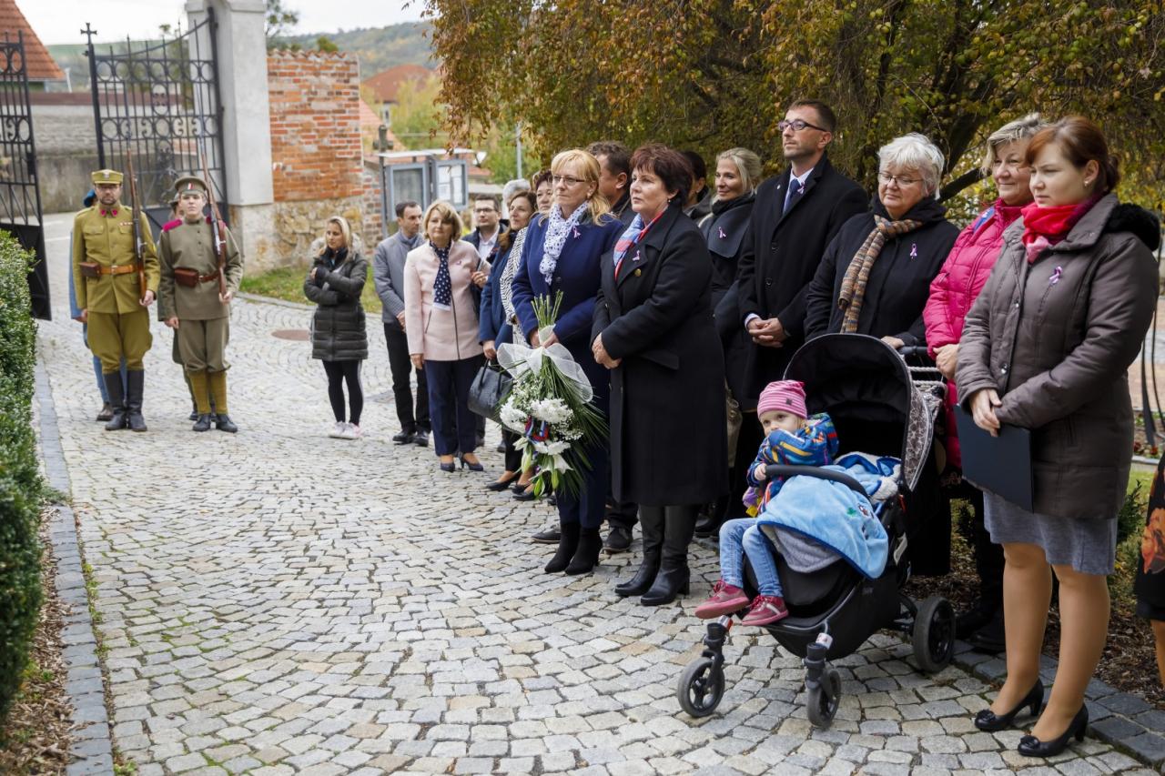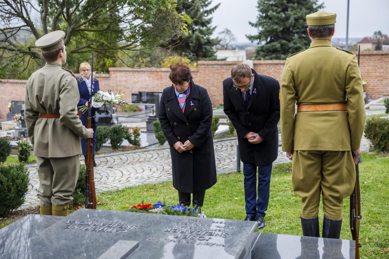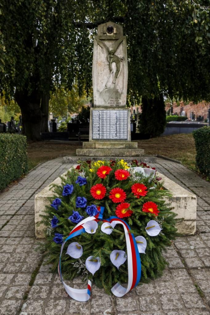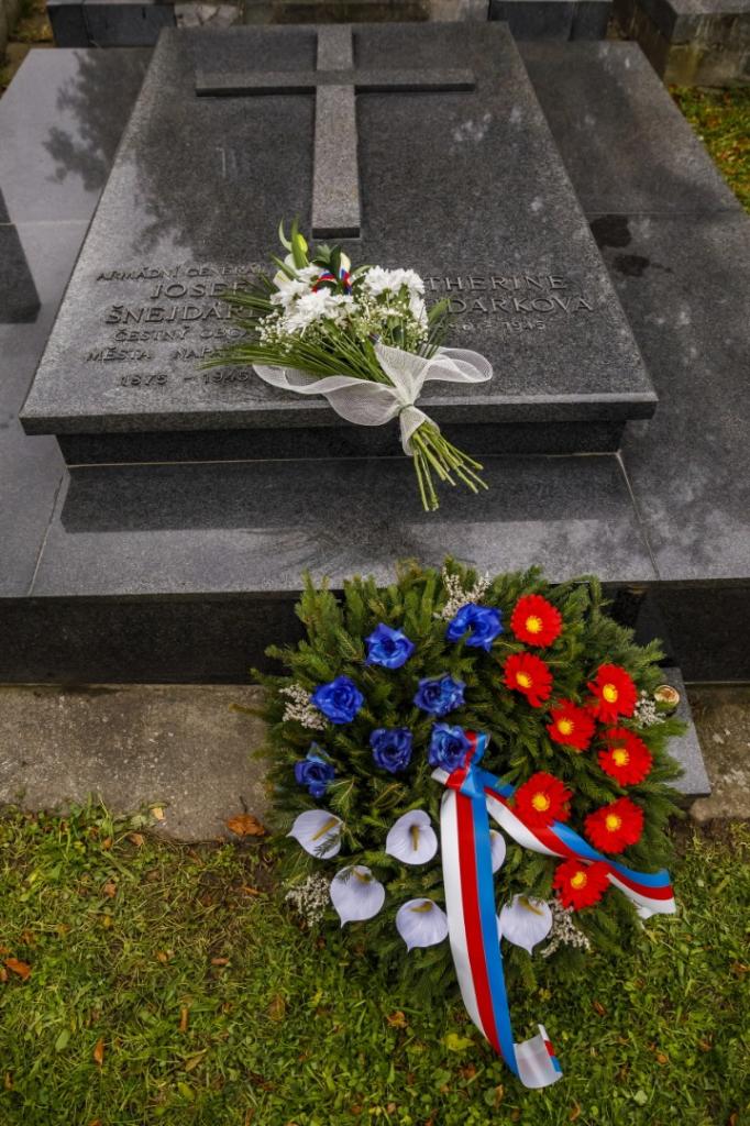Ve čtvrtek 25. října u příležitosti 100. výročí vzniku samostatného československého státu se uskutečnilo slavnostní položení věnců u pomníku padlým v 1. světové válce a u hrobu generála Šnejdárka na městském hřbitově v Napajedlích. Foto: Marian Vaňáč
