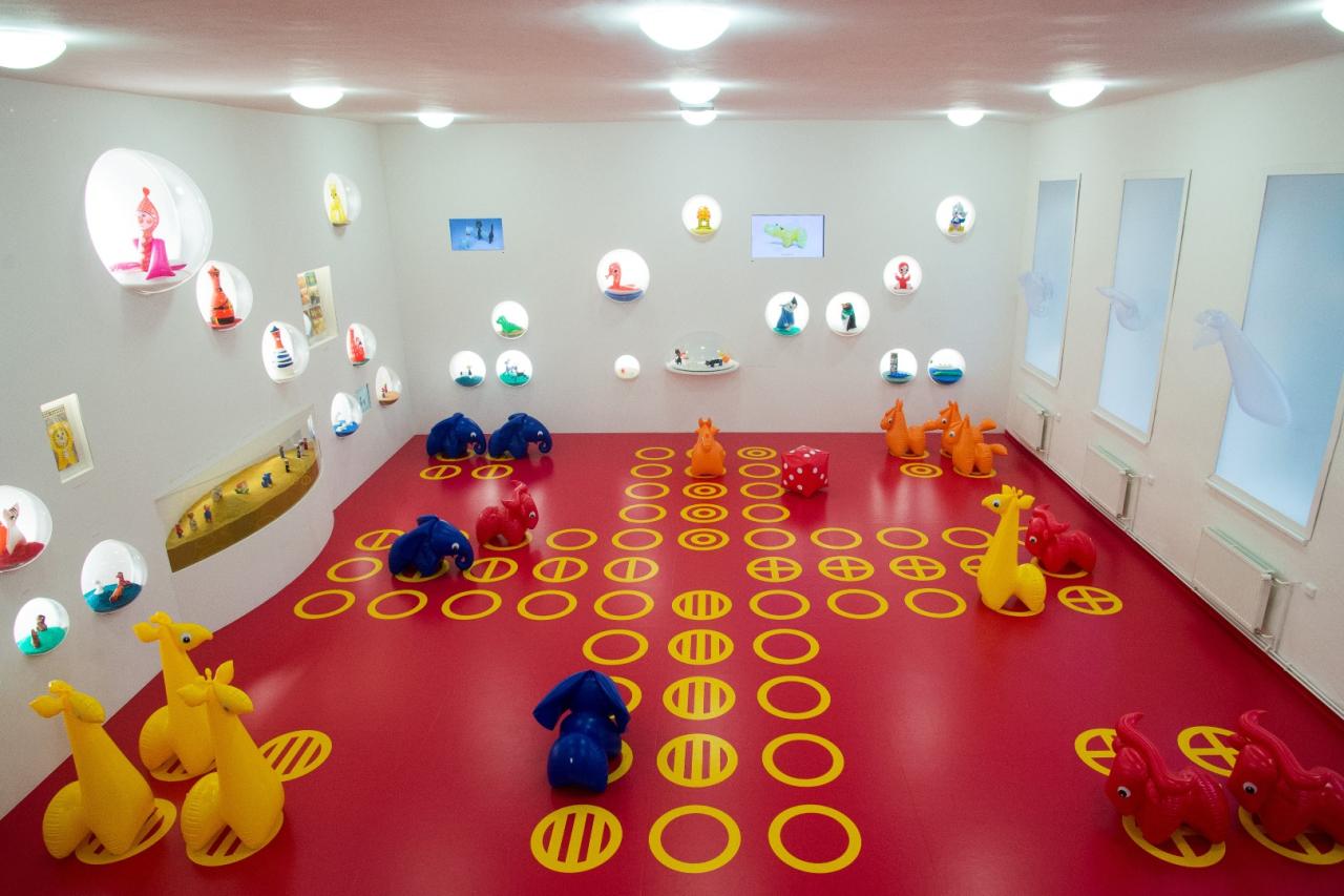 Unikátní stálá expozice je tvořena z hraček, které navrhli Libuše Niklová a Alfréd Klug. Malé děti si mohou zaskákat na legendárních nafukovacích hračkách jako je slon, žirafa nebo buvol, těm starším pak poslouží hračky jako figurky "Člověče nezlob se." Nechybí ani dotyková hra či pohádka Kocourovi kamarádi.