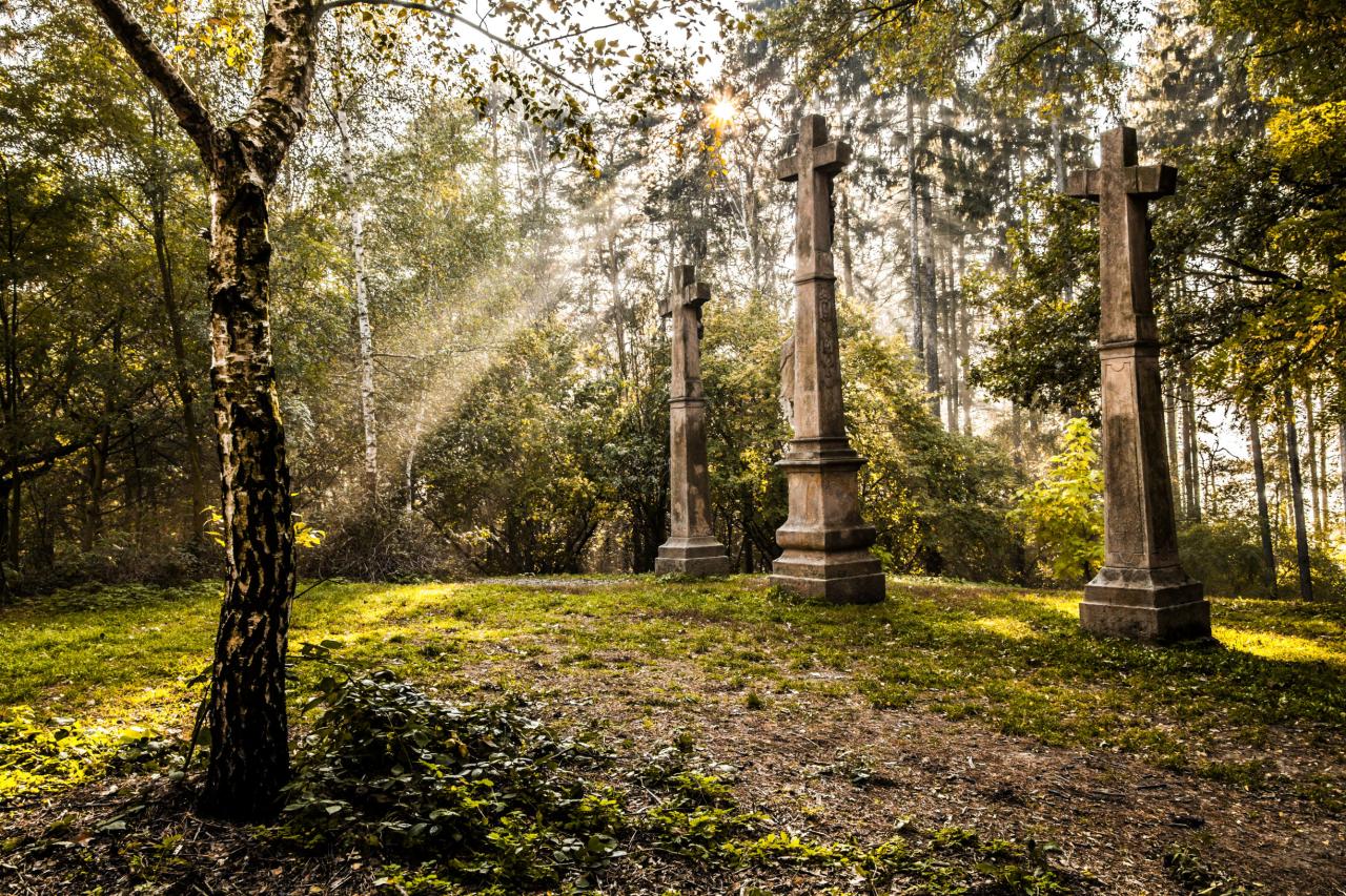 Sousoší Kalvárie – dříve ke třem pískovcovým křížům na vrcholu pahorku vedla barokní křížová cesta, z níž se dochovaly pouze dvě kapličky.